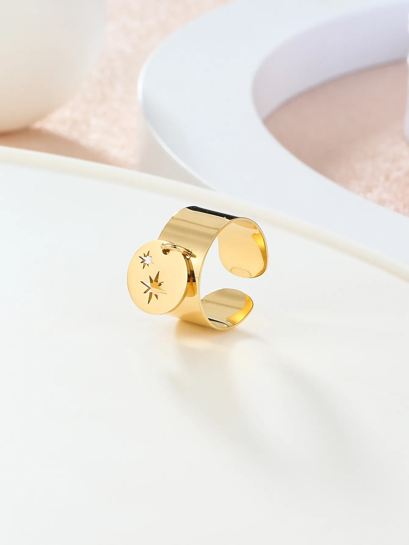 Design : Anneau lisse ajustable avec deux breloques étoile