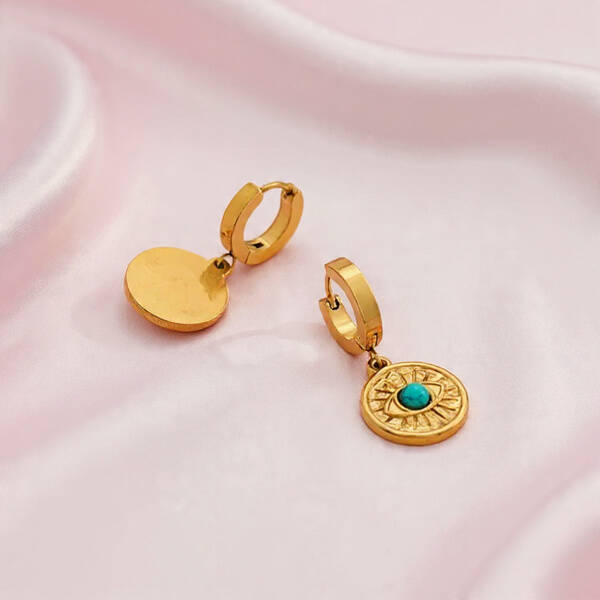 Boucles d’oreilles vintage dorées pour femme – Œil en pierre turquoise en acier inoxydable 304