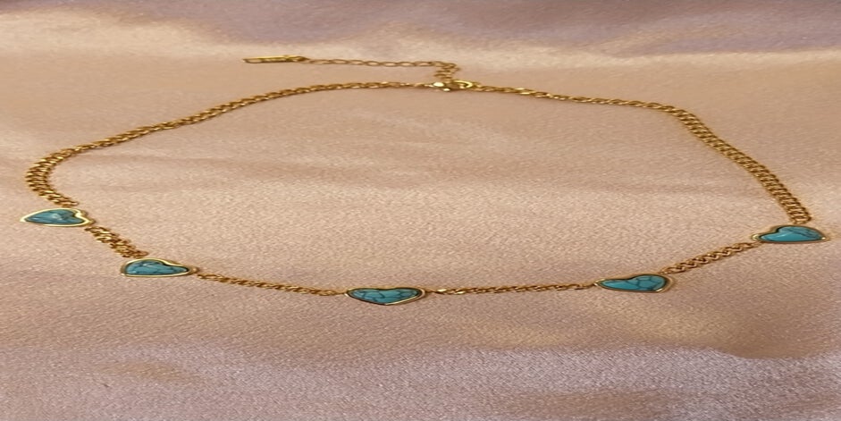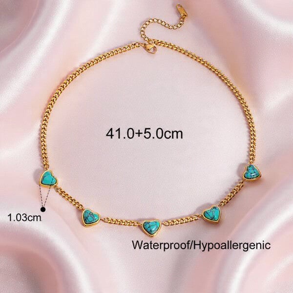 Collier Cœur Doré Serti – Acier Inoxydable & Pierre Naturelle Turquoise