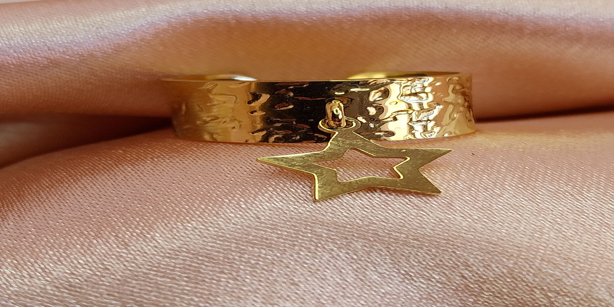 Bague Large Ajustable Dorée avec Pampille Étoile – Acier Inoxydable 304, Bijoux Tendance 2025