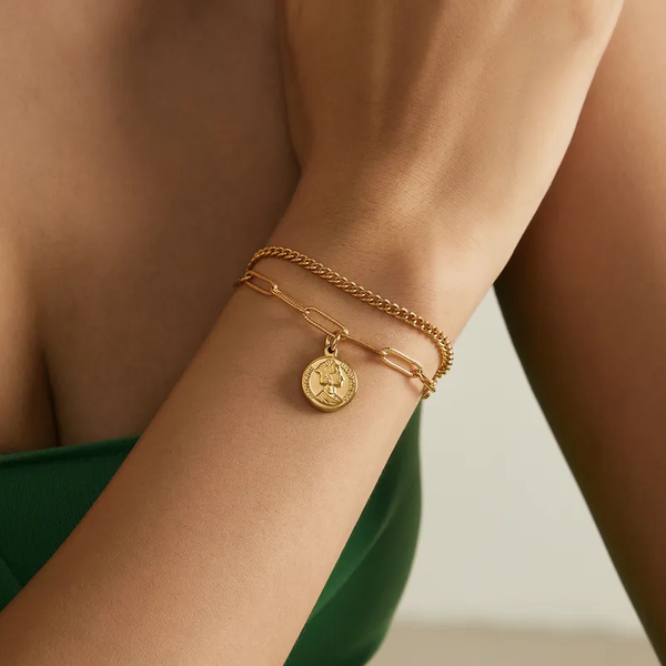 Affichez une élégance discrète avec le bracelet Parisienne, un bijou inspiré du style minimaliste « à la française ». Sa pampille ronde plate, façon médaille, traverse délicatement la chaîne pour créer un effet épuré et chic, idéal au quotidien comme en soirée.