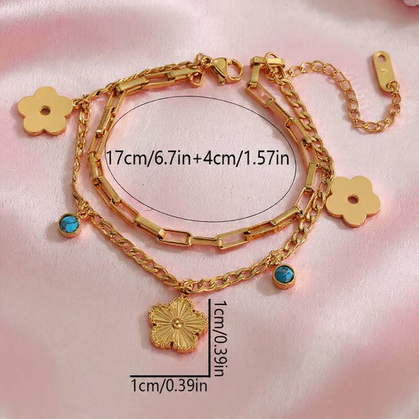 đ Bracelet Turquoise BohĂšme | Acier Inoxydable 304 dorĂ© & Pierre Naturelle | Breloques Fleur & Monogramme | vanbijoux