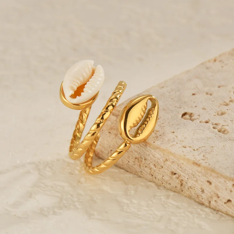 Laissez-vous transporter par l'esprit des vacances avec notre magnifique Bague Spirale Dorée Acier Inoxydable ornée de ses emblématiques coquillages cauris ! Ce bijou unique capture l'essence de l'été et des destinations ensoleillées, apportant une touche bohème chic et naturelle à votre style.