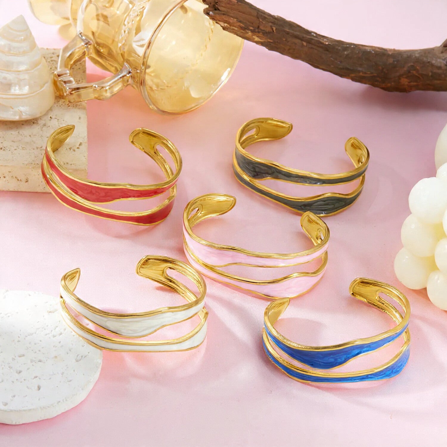 Bracelet Nacré Ajustable – Acier Inoxydable 304 Doré – Élégance Simple & Style Irrégulier - vanbijoux