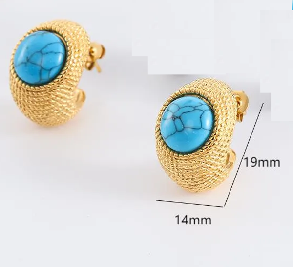 Boucles d’oreilles en forme de C avec pierre turquoise | Acier inoxydable 304 doré