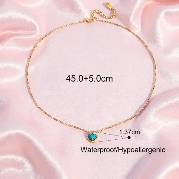 Collier Pendentif Cœur Doré – Acier Inoxydable & Pierre Naturelle Turquoise