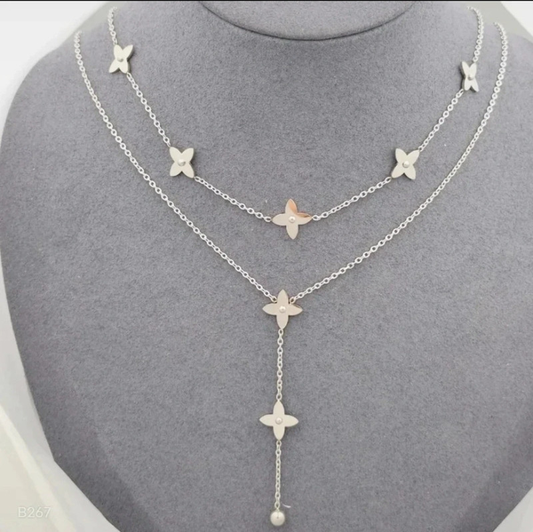 Collier Double Rang en Y | Trèfle à Quatre Feuilles | acier inoxydable 304 argenté | vanbijoux