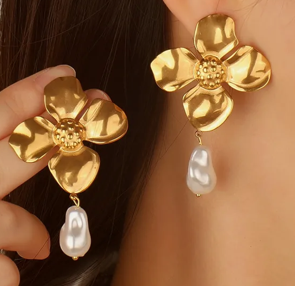 Boucles d’Oreilles Fleur Exagérée | Acier Inoxydable 304 doré | vanbijoux