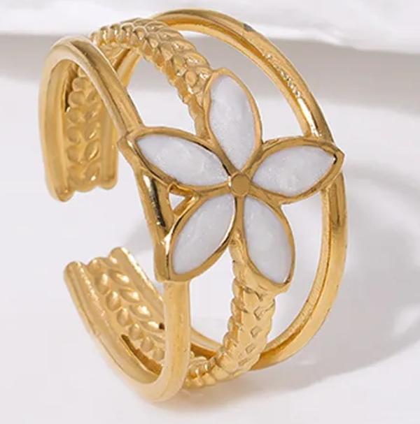 Bague fleur nacrer blanc | acier inoxydable doré | vanbijoux