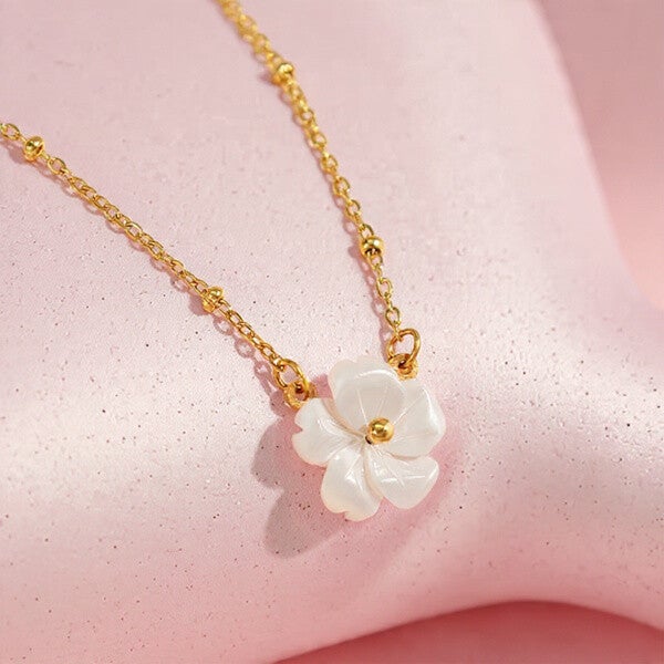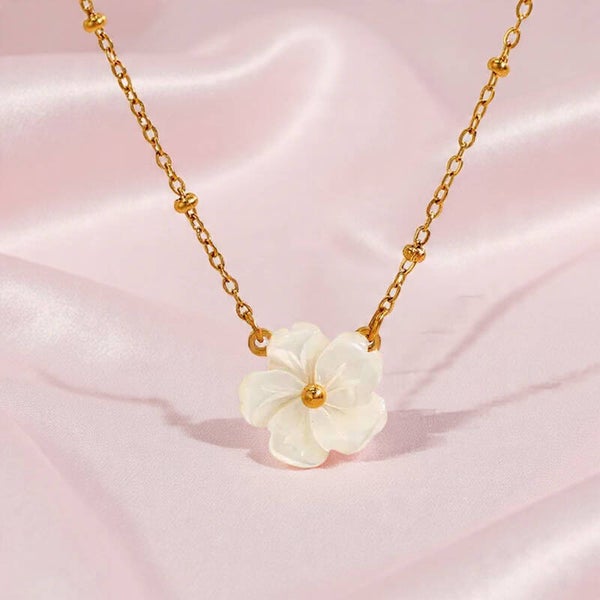 Collier Fleur Style Féérique IG – Acier Inoxydable 304 Doré, Coquille Nacrée | Chaîne Câble 40 + 5 cm, Pendentif 16,7 mm | vanbijoux