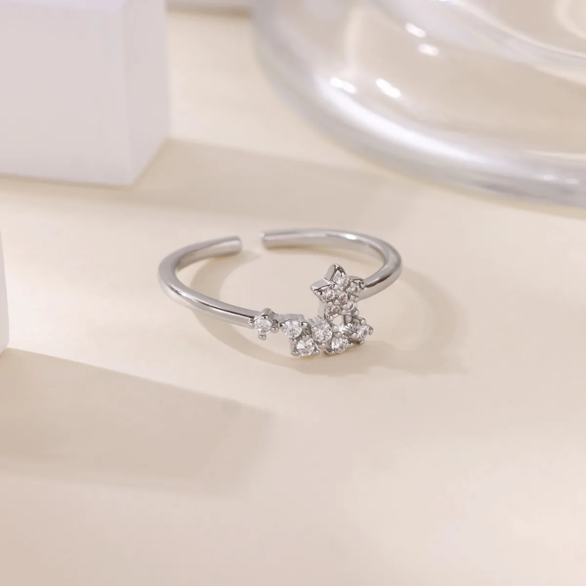 Offrez-vous un bijou raffiné avec cette bague ajustable ouverte au design géométrique élégant, sublimée par de délicats zircons étincelants. Conçue en acier inoxydable argenté de haute qualité, elle est résistante, ne ternit pas et conserve tout son éclat au quotidien.