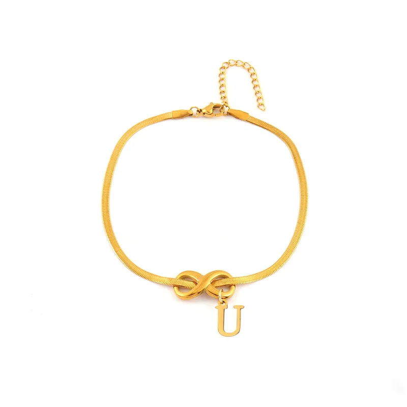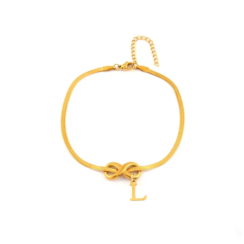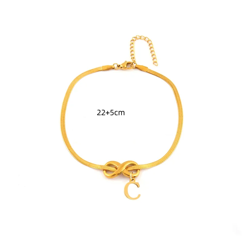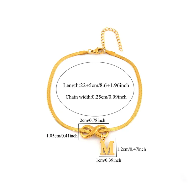 Bracelet de Cheville Infini & Lettre – Acier Inoxydable