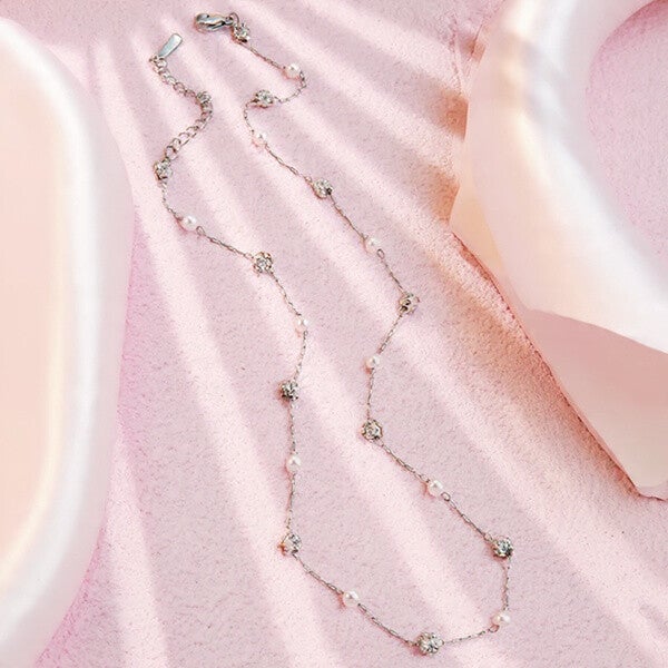Design : Chaîne délicate avec alternance de perles et boules scintillantes