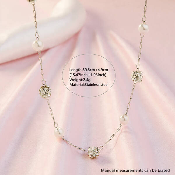 Collier fantaisie en acier inoxydable avec perles et boules strass