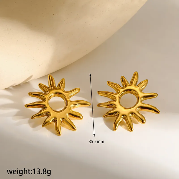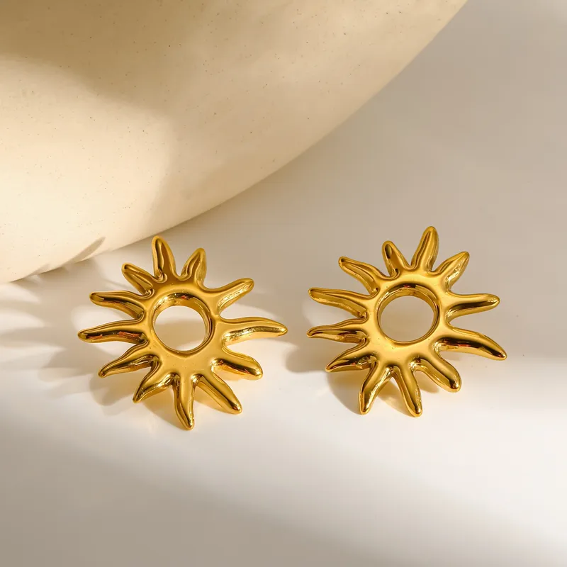 Boucles d'Oreilles Soleil Dorées Acier Inoxydable 304 | Clous d'Oreilles Statement Femme | Bijou Céleste Hypoallergénique