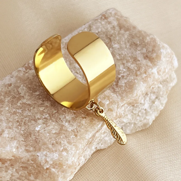 Bague ajustable pampille au centre| acier inoxydable doré | vanbijoux