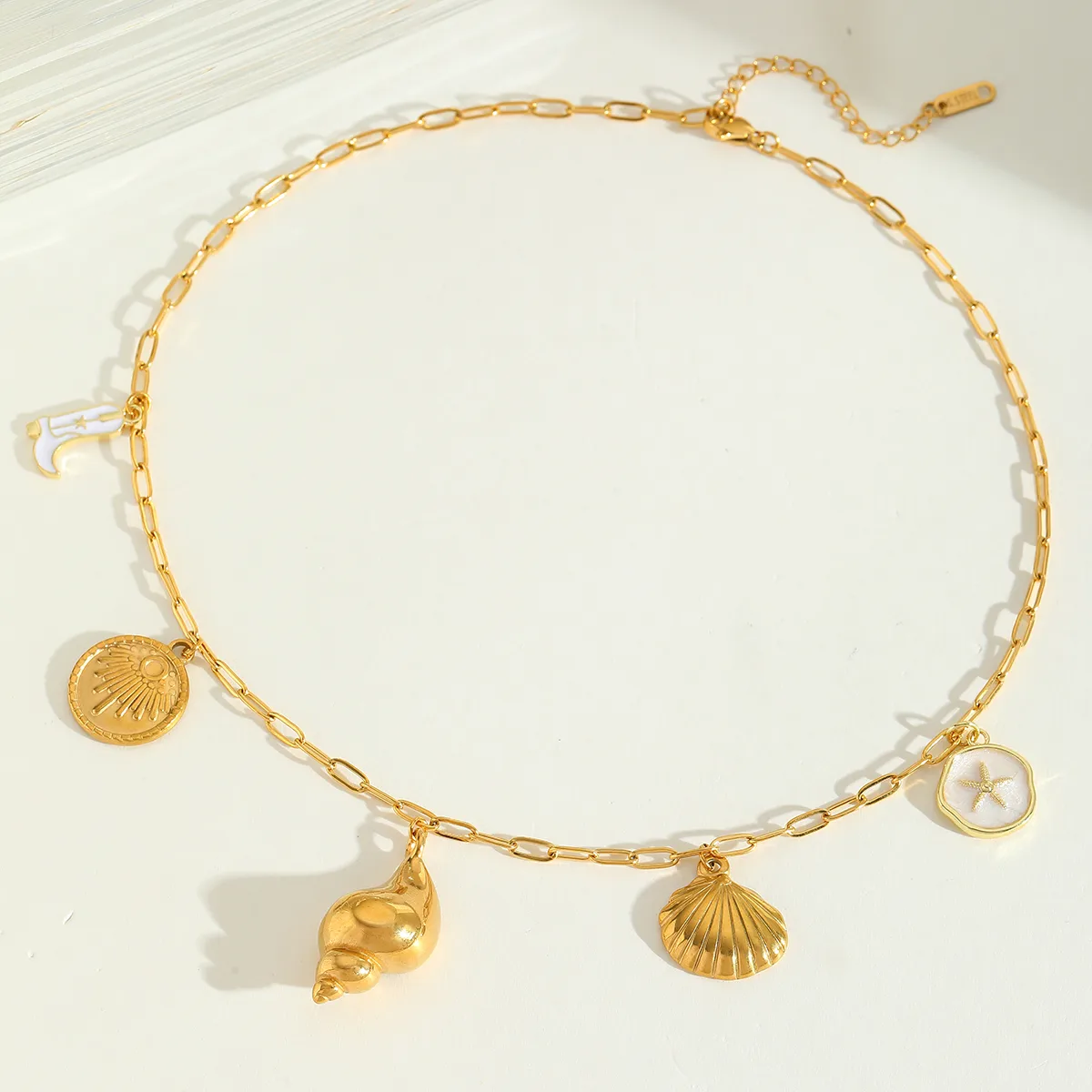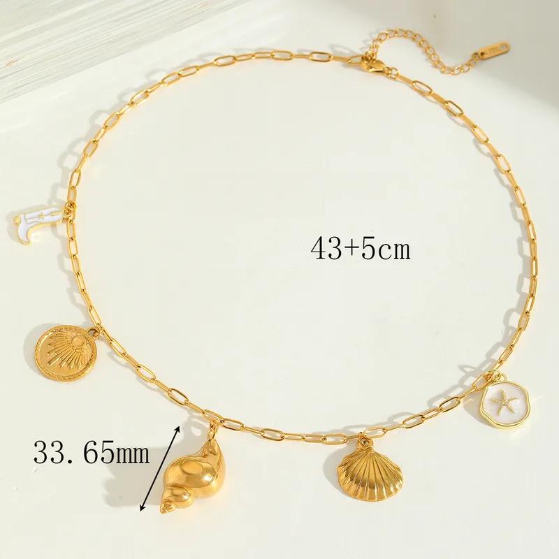 Collier chaine de trombone multi breloque étoile de mer conque | acier inoxydable doré | vanbijoux