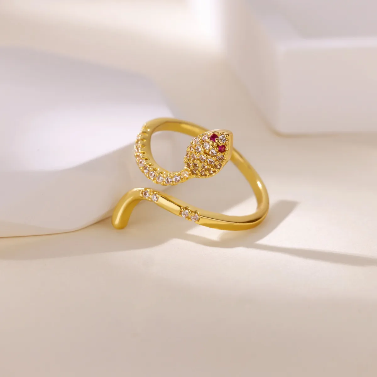 Bague Ajustable Dorée – Serpent Serti de Zircon Brillant