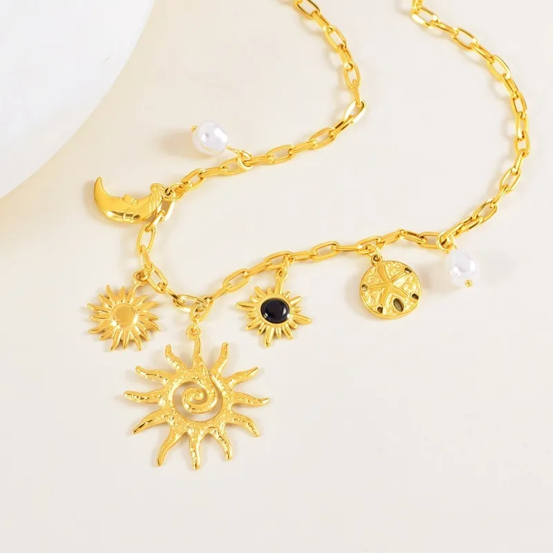 Collier Multi-breloques Style Moderne Soleil | acier inoxydable doré | vanbijoux