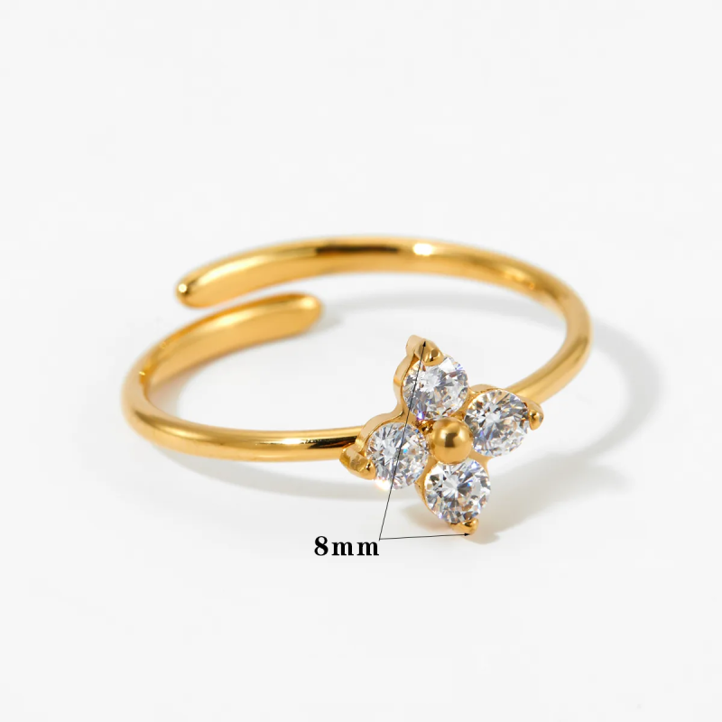 Bague fleur femme yanaha | acier inoxydable doré & zirconium