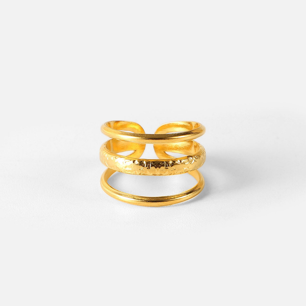 Bague Ouverte triple anneaux Superposé | Acier Inoxydable doré | Vanbijoux