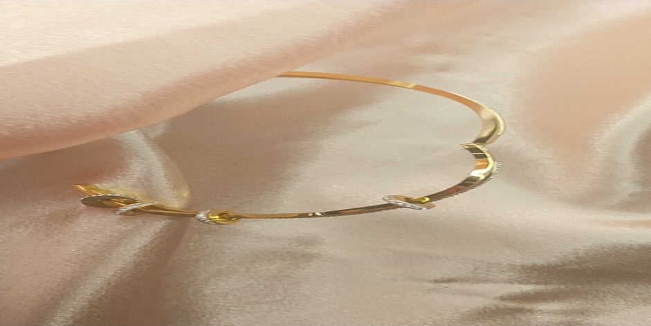 Bracelets Jonc fin orné d’anneaux pavés de strass, discret et raffiné Dorés Femme – Acier Inoxydable & Strass