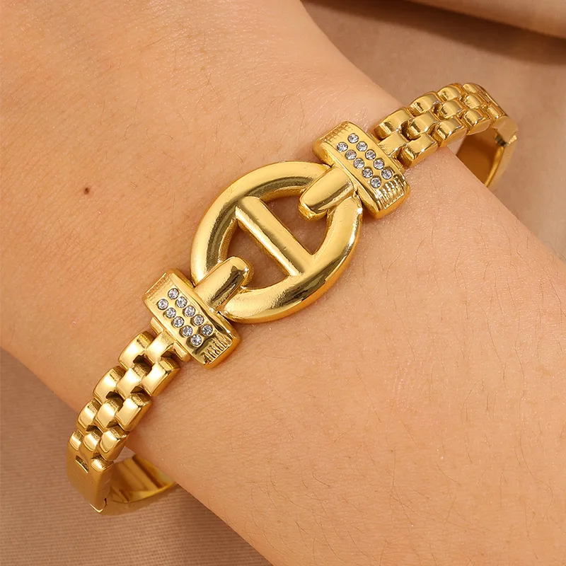 Bracelet Acier Inoxydable Doré Double D Strass - Élégance et Tendance