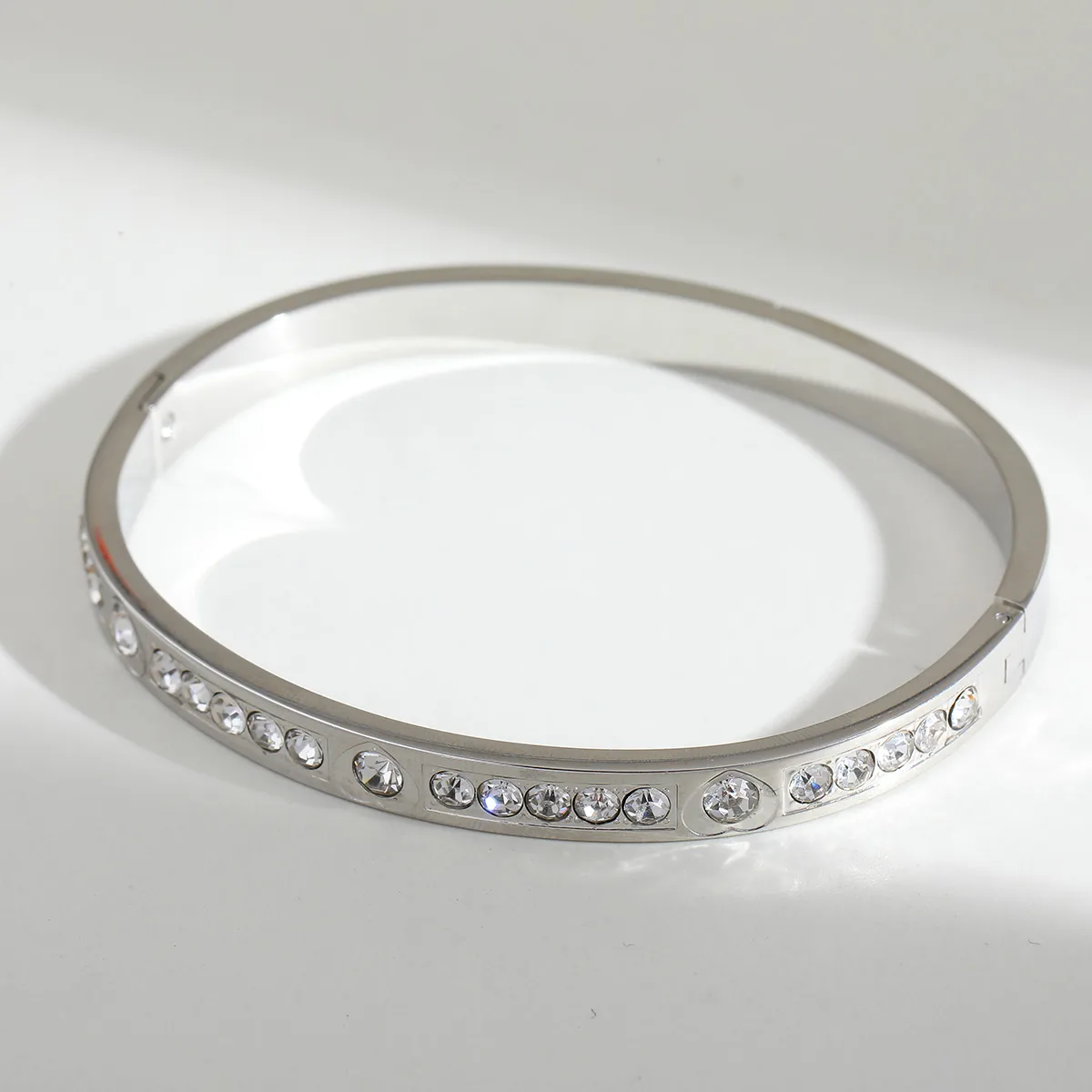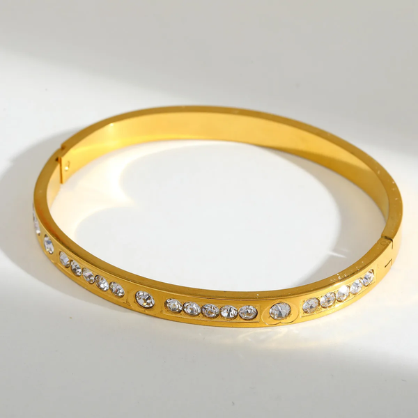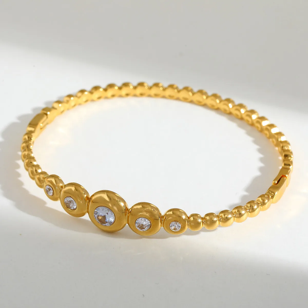 Bracelet Rond Minimaliste avec Zircon – Acier Inoxydable Doré ou Argenté