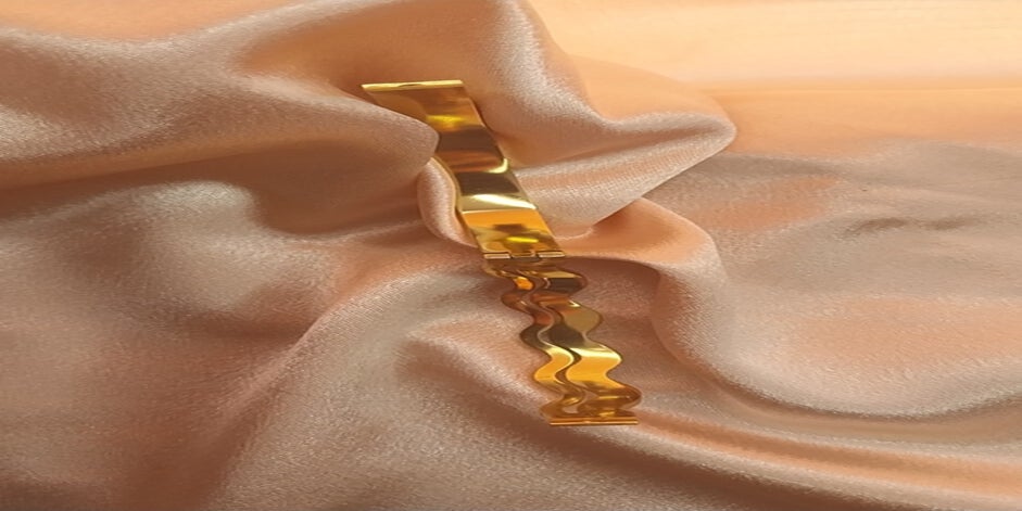bracelet aux lignes ondulées serties de strass scintillants Dorés Femme – Acier Inoxydable & Strass