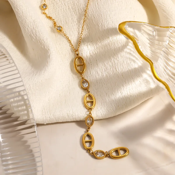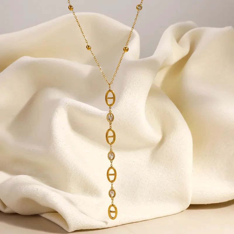 Sublimez votre décolleté avec l'élégance intemporelle de notre Collier en Y Doré pour Femme, conçu en Acier Inoxydable de haute qualité ! Ce bijou tendance et raffiné est l'accessoire parfait pour allonger votre silhouette et ajouter une touche de glamour à toutes vos tenues.