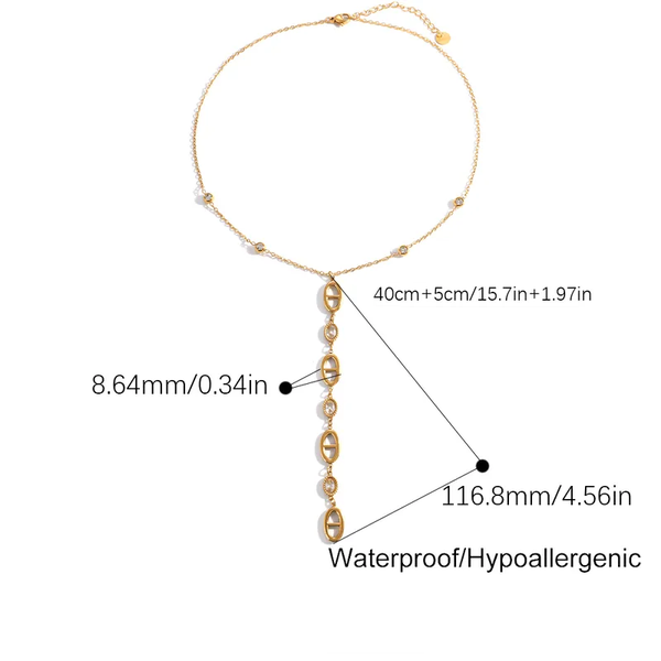 Le design en 'Y' de ce collier, agrémenté d'un délicat pendentif goutte à son extrémité, offre une allure moderne et sophistiquée. Sa chaîne fine et scintillante (en acier inoxydable doré) est non seulement belle, mais aussi incroyablement durable. L'acier inoxydable est réputé pour sa résistance exceptionnelle à l'eau, son insensibilité au ternissement et ses propriétés hypoallergéniques. Votre collier gardera son éclat jour après jour, sans effort d'entretien, et convient parfaitement aux peaux sensibles.