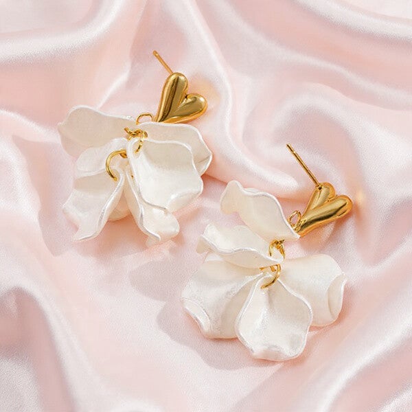 Boucles d’Oreilles "Lysia" – Élégance Florale Nacre & Doré - vanbijoux