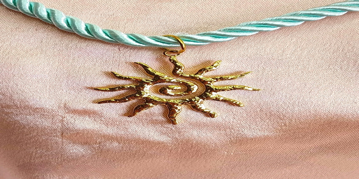 Apportez une touche de fraîcheur et de lumière à votre tenue avec ce collier "Soleil d'Été". Composé de cordons torsadés en satin coloré (rose pastel, bleu azur et vert menthe), ce bijou se distingue par son pendentif doré en forme de soleil rayonnant. Une pièce à la fois audacieuse et élégante, idéale pour sublimer vos looks estivaux ou bohèmes.