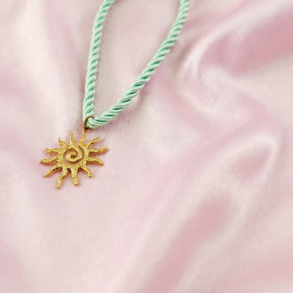 Collier "Soleil d'Été" – Cordon Torsadé Vert & Pendentif Doré