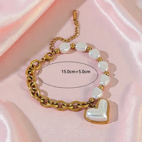 Bracelet Élégant Style Princesse – Doré en Acier Inoxydable 304 avec Grelot Cœur