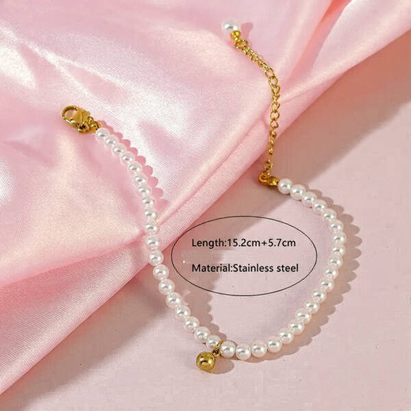 🌸 Bracelet | Perles en Relief | Acier Inoxydable Doré