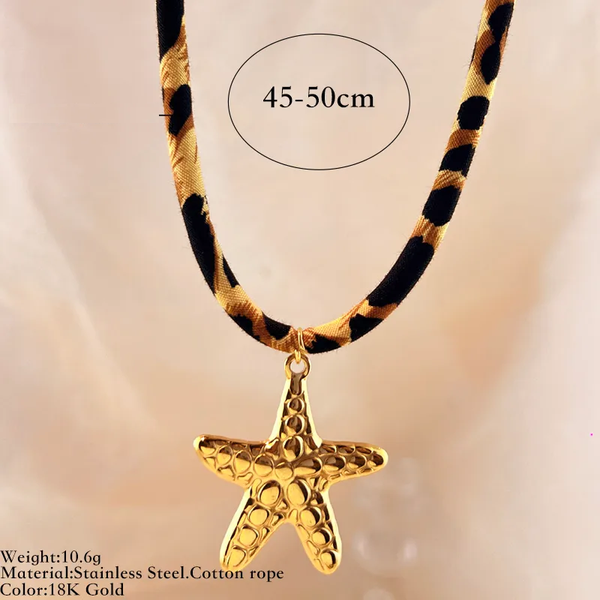 ✨ Collier Pendentif Léopard Vintage Etoile de Mer – Acier Inoxydable & Corde Coton ✨