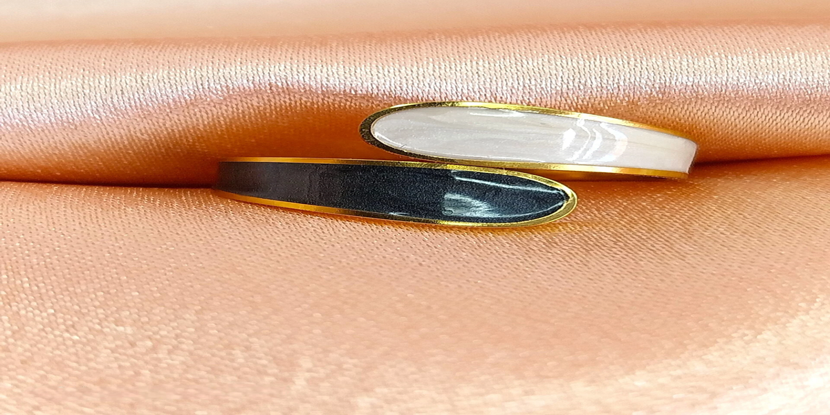 Bague rétro émail uni doré nacrée blanc et noir Acier Inoxydable 304
