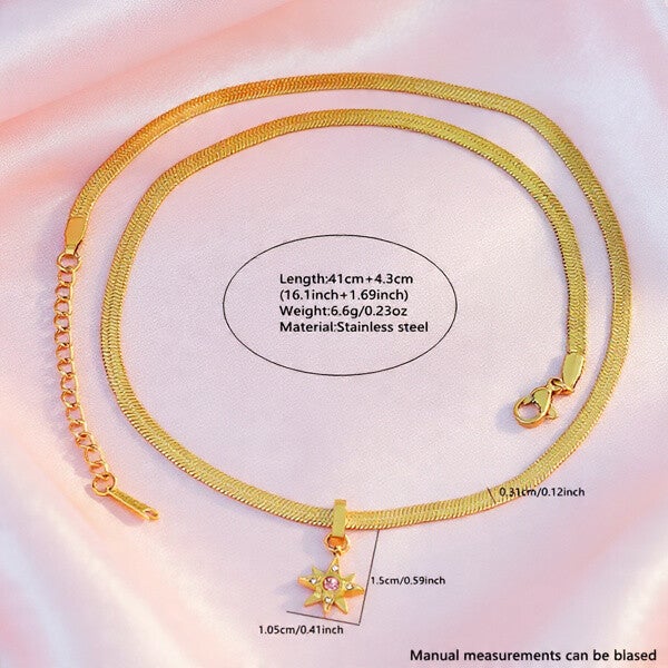 ✨ Collier doré pendentif étoile strass rose – Acier inoxydable ✨