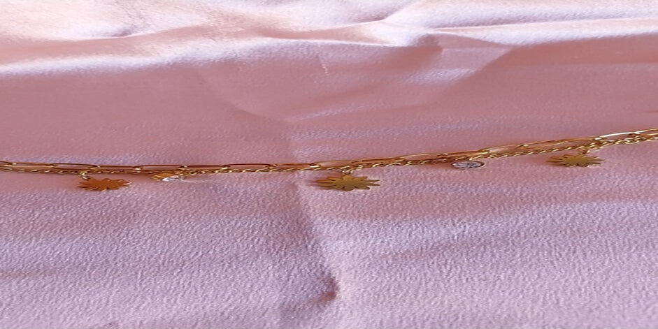 Apportez une touche de lumière et d’élégance à votre poignet avec ce bracelet raffiné en acier inoxydable doré. Son design double rang se pare d’une délicate pampille tournesol ornée de strass étincelants, symbole de joie et de vitalité.