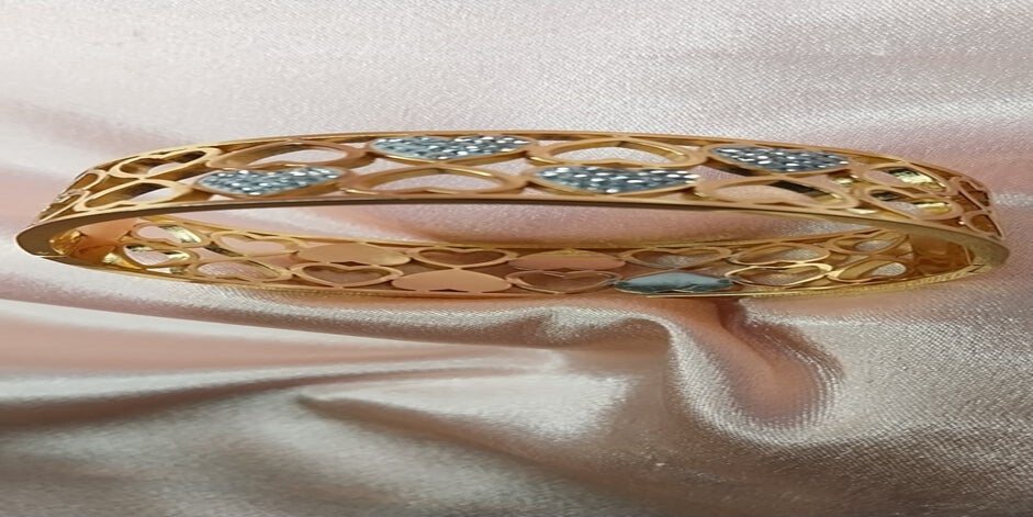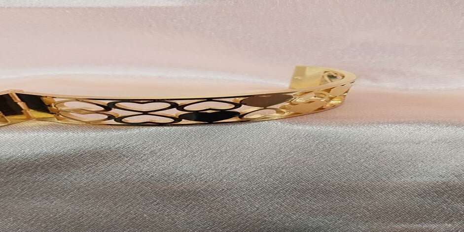 Sublimez votre poignet avec ce bracelet jonc doré coeur en acier inoxydable de haute qualité, un bijou raffiné qui allie élégance et durabilité. Son design ajouré met en valeur de délicats coeurs dorés, symboles de légèreté et de transformation, tandis que ses lignes ornées de fines strass apportent une touche de brillance subtile.