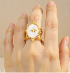 Inspirée par l’éclat céleste, cette bague tendance illumine vos mains et s’adapte parfaitement à un look chic ou bohème. Conçue en acier inoxydable 316L, elle garantit une longue durée de vie, résiste à l’eau et ne ternit pas.