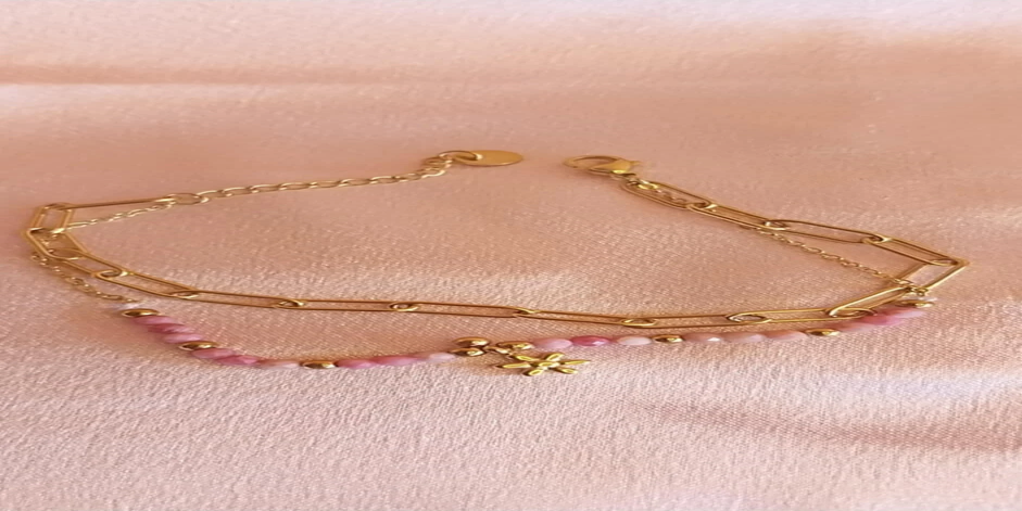 Au centre, un pendentif fleur doré symbolise la délicatesse et le raffinement, faisant de ce bijou un accessoire idéal pour toutes les occasions, du quotidien aux moments spéciaux.