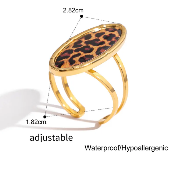 Bague ajustable vintage femme en acier inoxydable doré – Motif léopard ovale
