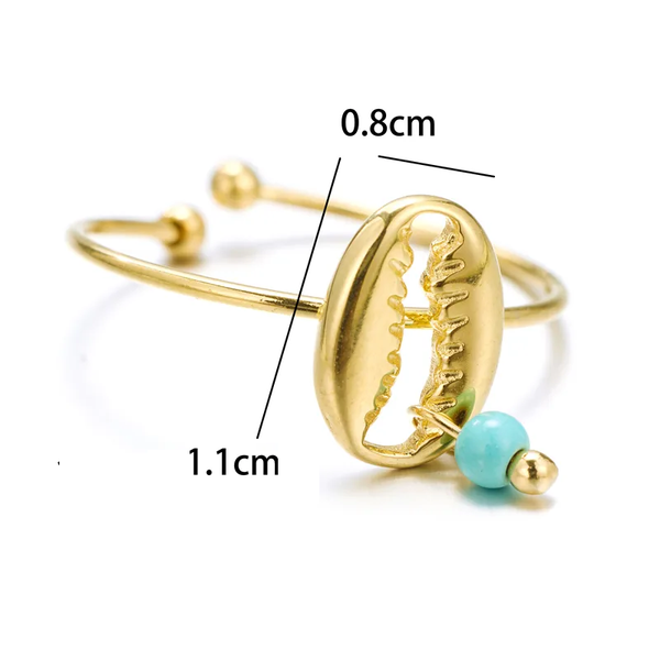 Bague Vintage Coquillage & Perle bleu – Acier Inoxydable Doré