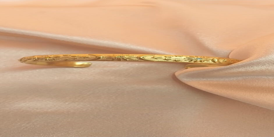 Bracelet Jonc Acier Inoxydable Gravé – doré étoile brillante en Relief