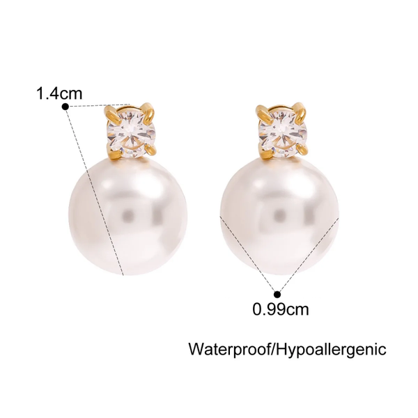 Boucles d’Oreilles Clous Strass et Perle – Acier Inoxydable Doré