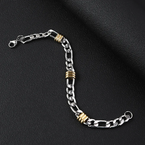 Affirmez votre style avec ce bracelet masculin bicolore doré et argenté, conçu en acier inoxydable de haute qualité. Alliant robustesse et élégance, ce bijou offre un design moderne et raffiné, parfait pour compléter une tenue chic ou décontractée. Sa finition brillante et sa largeur de 8 mm lui confèrent une allure à la fois puissante et sophistiquée.