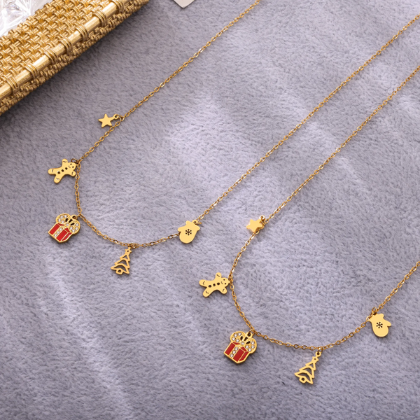 đ Collier Charms de NoĂ«l DorĂ© â Acier Inoxydable dorĂ©