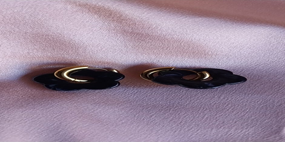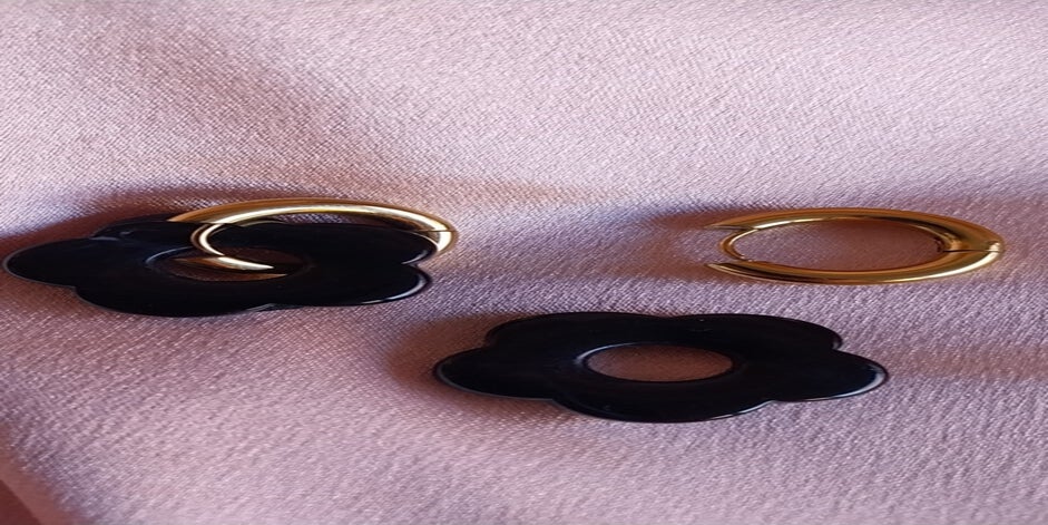 Boucles d’Oreilles Fleur Noire & Anneaux Dorés – Acier Inoxydable (26,2 mm / 19,8 mm)